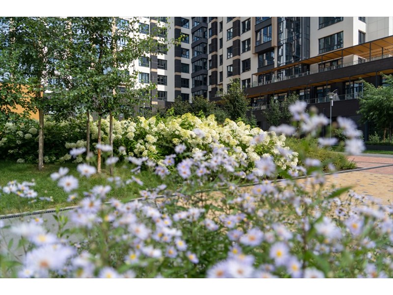 •Закрытый цветущий двор-сад с ландшафтным оформлением территории и приятной музыкой в стиле lounge. Совместно с компанией Urban Green разработан проект по благоустройству внутренней территории квартала с дорожками для катания на роликах, беседками, бесплатным Wi-Fi. Спортивные корты для летних игр и workout-зоны станут местом притяжения для маленьких резидентов и любителей занятий спортом на свежем воздухе в летнее время. Workout-зона будет оснащена противоскользящим резиновым покрытием.