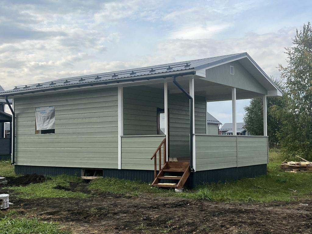 | <p>Продам 1 этажный деревянный дом общей площадью 54 м кв. на земельном участке 8 соток. Дом от застройщика, отделка под ключ. Готовность дома май – июль 2026г.</p>