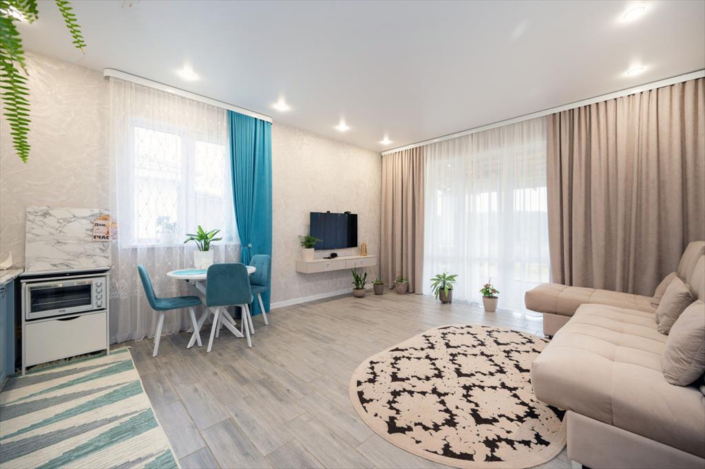 | Продам тёплый и уютный 1 этажный дом, площадью 88,5 м2 на земельном участке 7 соток, расположенный в КП Бобровская усадьба.<br />Торг за быстрый выход на сделку!<br /><br />Конструктив дома:<br />фундамент- буронабивные сваи с бетонным ростверком, монолитная стена<br />стены -газоблочные с утеплителем, оштукатуренные, окрашенные<br />перегородки- газоблочные, оштукатуренные<br />перекрытия- деревянное<br />крыша- металлочерепица по деревянным стропилам и обрешётке<br />отопление- от эл. котла<br />водопровод- скважина<br />канализация-септик<br /><br />Дом построен по современному проекту: большая кухня- гостиная с выходом на террасу, 2 изолированные спальни, большой санузел, вместительная бойлерная.<br /><br />Преимущества:<br />- В доме выполнен качественный ремонт: на полу ламинат, на стенах виниловые обои, на окнах- стеклопакеты.<br />- Большая кухня-гостиная 26 м2, с выходом на террасу, окна панорамные, поэтому всегда светло и солнечно.<br />- 2 изолированные спальни (14,1 м2, 13,8 м2) <br />- Санузел совмещённый <br />- Котёл 9 Квт, есть водонагреватель, разводка под стиральную и сушильную машины, здесь же люк для выхода на чердак<br />- Есть парковка для автомобиля<br />- По периметру дома установлены трубы для забора<br /><br />Соседи доброжелательные, проживают круглогодично.<br />Приятным бонусом новому обладателю в спальне остаётся большой, вместительный шкаф и двухспальная кровать.<br /><br />Транспорт<br />•с п.Бобровский ходит автобус N185,N182.<br />•10 минут до Тюменской трассы.<br /><br />Земля плодородная, есть грядки. Можно сделать красивый ландшафтный дизайн. <br /><br />Один взрослый собственник. <br /><br />Звоните, чтоб узнать подробности и записаться на просмотр!