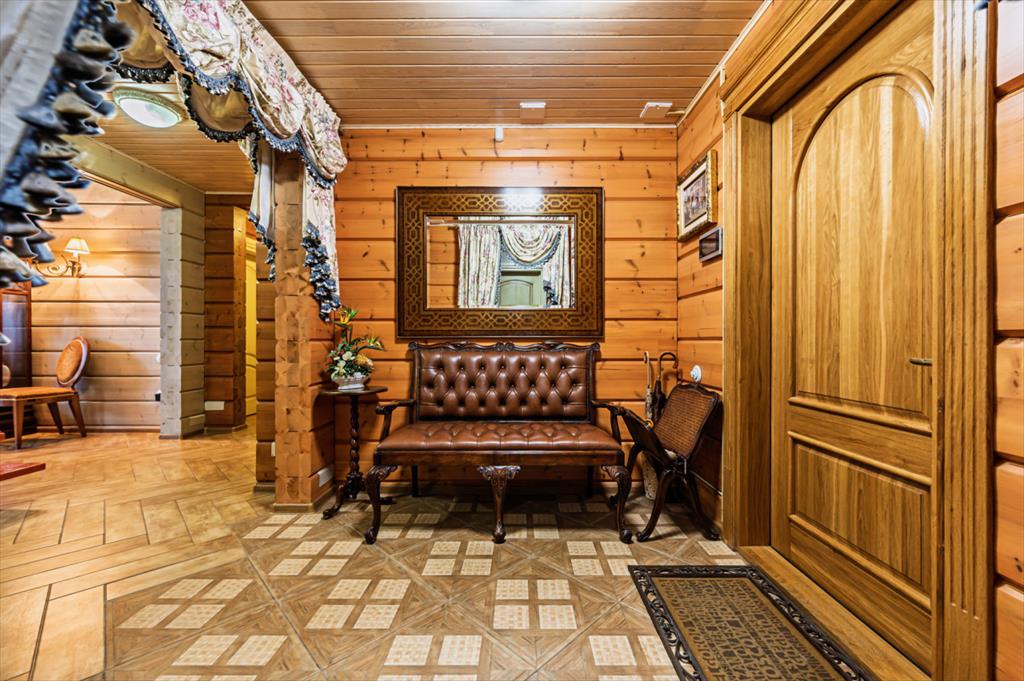 | В продаже элегантный двухэтажный дом из клеёного бруса<br />Современный дом из клеёного бруса (финский производитель «Kontio») создан по эксклюзивному авторскому проекту в стиле современной русской усадьбы. Архитектура сочетает традиции с лаконичностью и технологичностью, а каждая деталь продумана до совершенства.<br />Высота потолков и второй свет придают пространству ощущение воздуха и света. В центре дома — эффектная лестница из дерева, окрашенная в привлекательный коралловый цвет, уравновешенный белыми изразцами камина, расположенного под ней. <br />Тёплые оттенки интерьера, натуральные материалы и панорамное остекление создают гармонию света и уюта.<br />Особое внимание уделено зоне отдыха: просторная кухня-столовая со встроенным кухонным гарнитуром от итальянского производителя Guilia Novars, каминный зал и спортивный блок с сауной и спа-пространством. Для удобства предусмотрена функциональная гардеробная, прачечная и отдельная комната для хранения сезонной одежды.<br />Множество окон с деревянными стеклопакетами и усиленным стеклом (защита остекления класса А1) наполняют пространство ярким светом со всех сторон.<br />Отдельно предусмотрены гостевая, санузел, спортзал, бытовая (постирочная), гардеробная для сменной обуви и одежды, зима-лето.<br />Коралловый цвет объединяет лестницу, ведущую на второй этаж, и встроенный книжный шкаф на нем в один гармоничный ансамбль. Скошенный высоко расположенный мансардный потолок в детской, ванной и спальне создает ощущение интимности и домашнего уюта. Это дом для тех, кто ценит эстетику, комфорт и качество во всём — от архитектуры до мельчайших деталей интерьера.