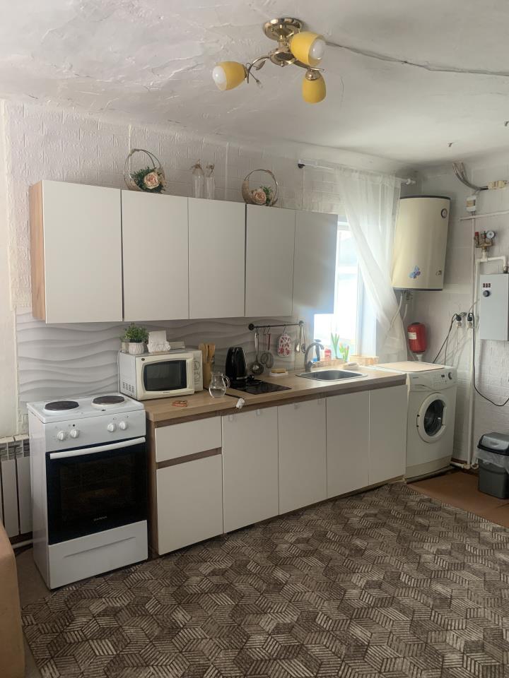 | Предлагаем бревенчатый 3-х-комнатный дом тёплый и уютный.<br />Участок 13,5 сот - разработан, земля удобренная. Две теплицы по 15 м и 7 м.<em> </em>Земля ухоженная: огурцы, и помидоры, перец, фруктовое изобилие. Для удобства оборудована система полива: установленный на высоком уровне бак наполнятся водой, от которого вода растекается по заданным направлениям. Места хватает - имеется площадка под бассейн. Имеется оборудованные места для домашней живности: курятник, крольчатник, поросятник: хлев. Рядом есть место - где отдохнуть у речки, прогуляться по перекинутому железному мостику. <br />По сути - всё необходимое рядом. Прекрасная локация: аптеки, торговые точки и остановки общественного транспорта в пешей доступности.<br />Отопление дома от батарей=== Установлен Электро-котёл 6 квт, от него по разводкам полипропиленовых труб с помощью циркулярного насоса и приборов: в зависимости от температуры в доме, пропускается горячая вода к радиаторам. (по оплате 5-7 т.р в мес. - как средн.кв).<br />Имеется рабочая печь - голландка.
