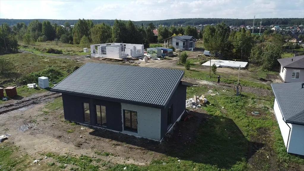 <li>Дом из качественного газоблока с утеплением фасада 100 мм, крыша двухуровневая с красивой мягкой кровлей TechnoNICOL.</li>