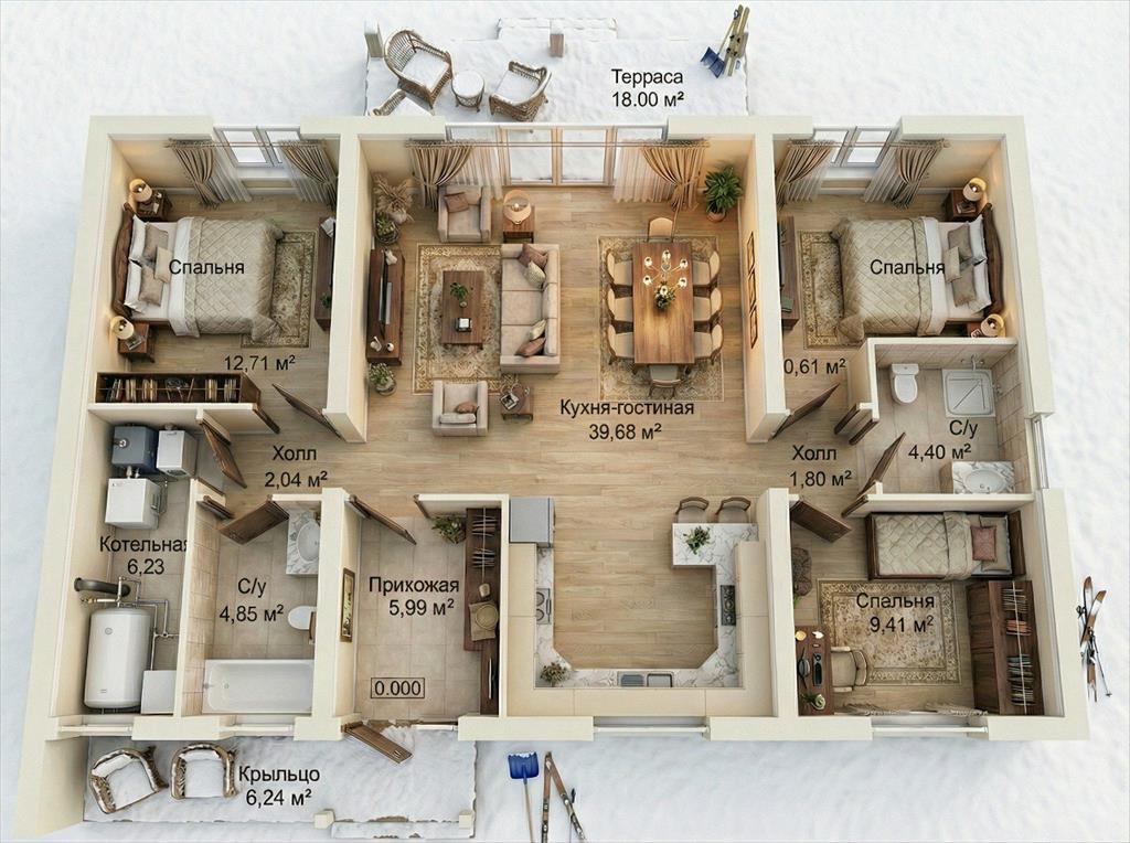 <p>Одноэтажный дом «Фишт» — это 122,14 м² общей и 97,72 м² жилой площади, где каждая деталь служит комфорту и вдохновению. Функциональная кухня-гостиная с выходом на предполагаемую уютную террасу становится центром семейной жизни: тут можно устраивать тёплые вечера, отмечать праздники и просто наслаждаться общением, наблюдая рассветы и закаты через панорамные окна.</p>