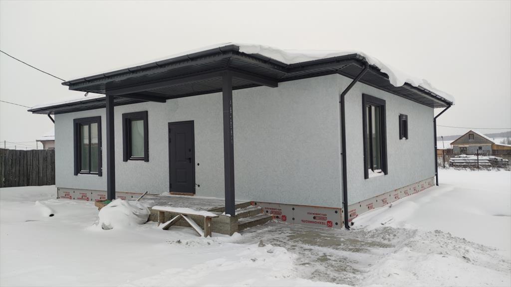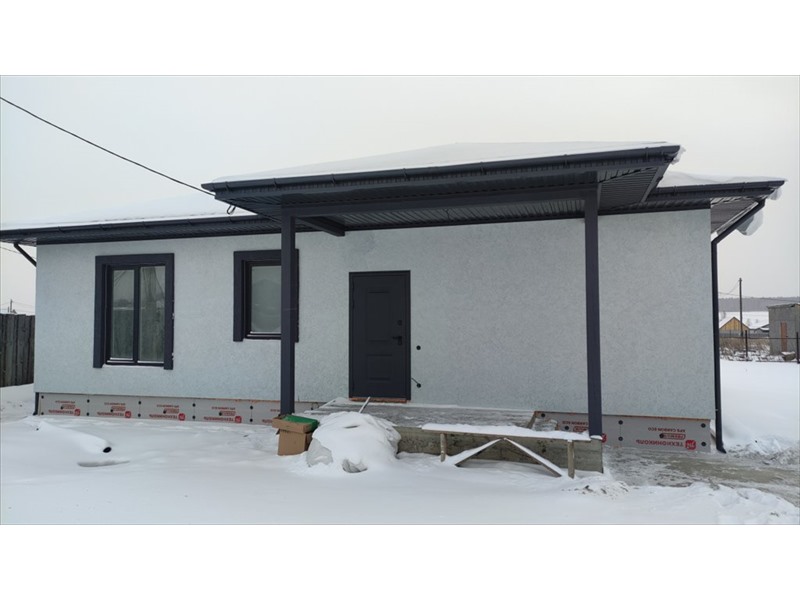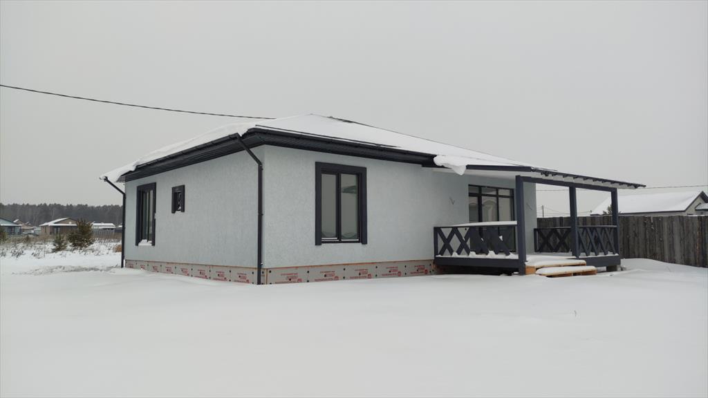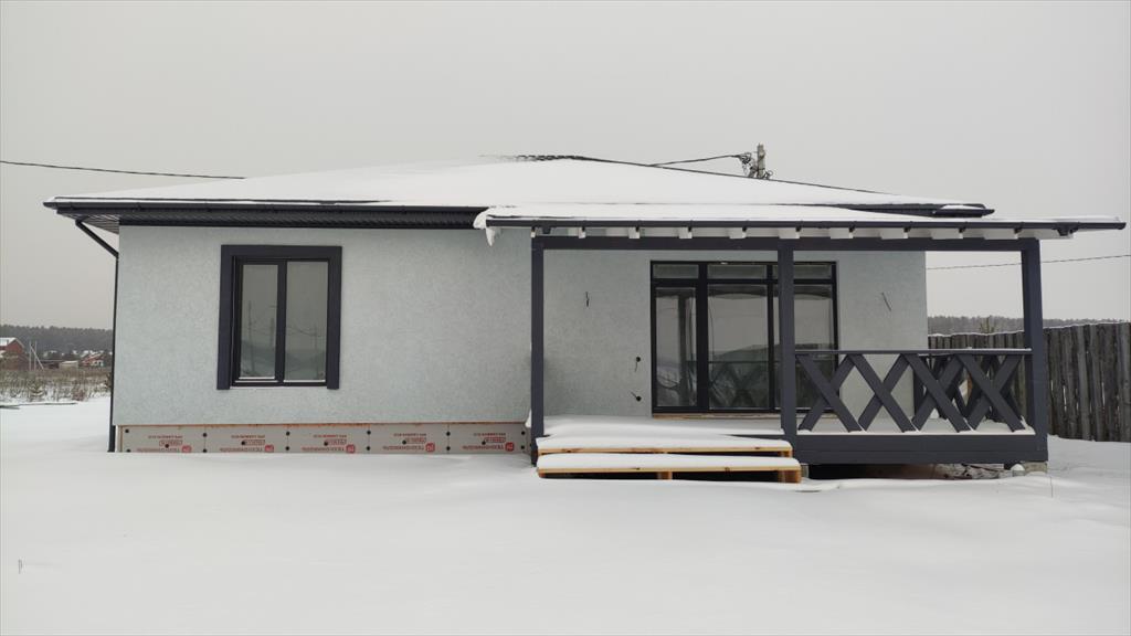| Продам готовый жилой дом площадью 141 метр с террасой!<br />Участок 10 соток, земли поселений, назначение - ИЖС, входит в стоимость.<br />Участок выровнен, без перепадов. <br />Три изолированные комнаты, просторная кухня - столовая 40 кв.м. с выходом на крытую террасу.<br />Стены - твинблок 300, утеплитель - минеральная жесткая плита (Плотность 105 кг/м³), штукатурка CERESIT,<br />Фундамент утепленный - сваи (глубина 2 метра) с шагом 2,5 метра, ростверк 60см, арматура 12мм стальная, отмостка 1 метр, монолитная плита армированная, ж/б армопояс, бетонные перемычки над проемами, механическая штукатурка стен, полусухая стяжка полов.<br />Мягкая кровля - черепица Технониколь Shinglas.<br />Панорамные окна!<br />Стоимость с чистовой отделкой.<br />в чистовую отделку входит:<br />комнаты - на полу ламинат,<br />тамбур, котельная, санузел, кухня -столовая - керамогранит, плитка,<br />качественная входная дверь с терморазрывом,<br />стены - идеально ровные (механическая штукатурка) с нейтральными обоями или под покраску,<br />натяжные потолки, межкомнатные двери с фурнитурой.<br />Электричество 380В подключено, выделенная мощность 15кВт,<br />Септик (3 кольца), скважина 60+ метров, заведена в дом, все подключено.<br />Водяные теплые полы (Котел на 12кВт включен в стоимость), водонагреватель 100л на горячую воду.<br />✔️Подходит под сельскую и семейную ипотеку (минимальный первоначальный взнос 20%, возможна продажа без ПВ)<br />Экскурсии по всем готовым объектам в любое время!