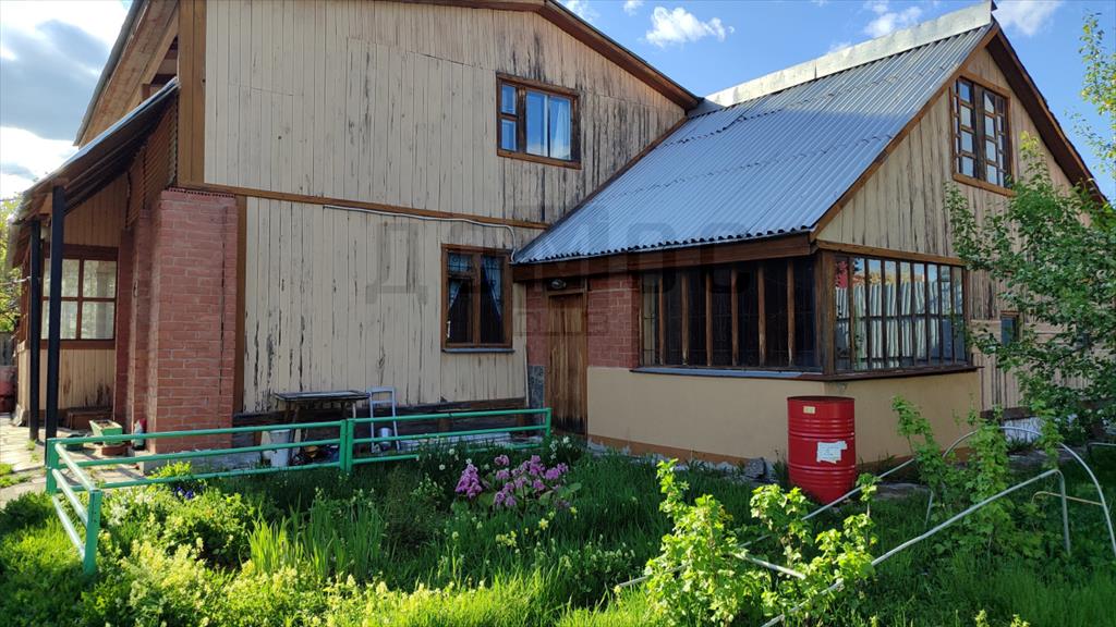 <p>На участке расположен дом+ баня+ гараж и кладовые, все под одной крышей. Дом деревянный с печкой и камином. В доме два этажа, три жилых комнаты. Дом интересный, можно использовать как для сезонного проживания, или как гостевой.</p>