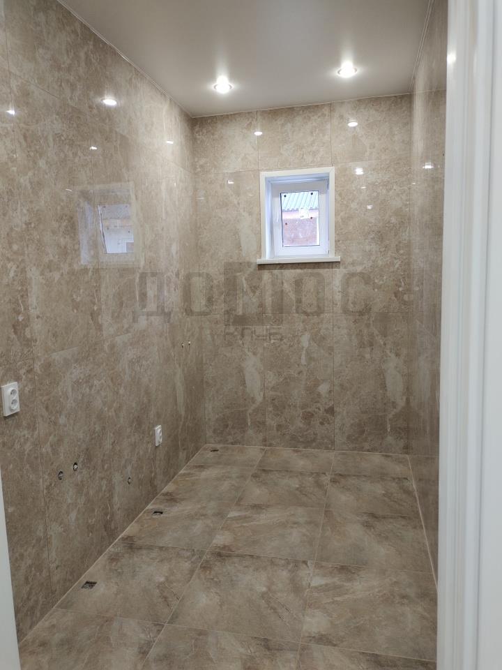 <p><b>Характеристики дома:</b><br />— Кровля: мягкая черепица с утеплением<br />— Стены: газоблок 300 + базальтовый утеплитель 50 мм<br />— Фундамент: свайно-ростверковый (бетон марки 300)<br /><b>Отделка:<br /></b><br />Чистовая отделка включает: керамогранит на полу, установленные межкомнатные двери, натяжные потолки со встроенными светильниками, плитка в санузле.</p>