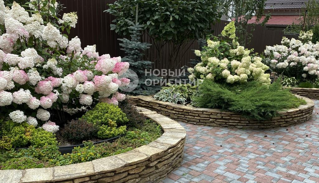 <p>Разбит сад с плодоносящими деревьями, голубыми елями, розами, гортензиями и другими видами многолетних растений.</p>