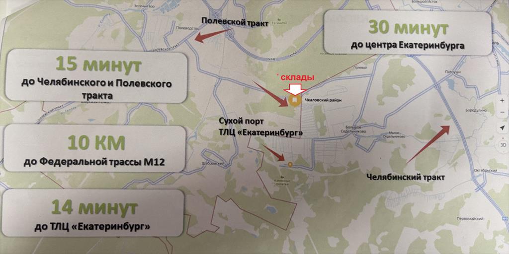 | <b>Современный производственно-складской комплекс.</b> Строительство складов класса С. В стоимость входит: <b>склад 372м2 + офис 40м2,</b> <b>земельный участок. </b><b>Мощность – от 25 кВт до 150 кВт (</b>возможно увеличение). Высота потолков -<b>5 метров</b>, контроль <b>температуры</b> <b>(теплый/холодный склад)</b>. <br /><br /><b>ЛОКАЦИЯ:</b> Район Чкаловский. <b>Южный ЛОГОПАРК. В 30-минутах от центра города. <b>Рядом с ТЛЦ «Екатеринбург».</b></ b><br /><br /><b>ХАРАКТЕРИСТИКА ОБЪЕКТА:</b><br />Общая площадь <b>412м2: склад 372м2, офис 40м2</b><br />Общая мощность на территории – <b>150 кВт (на склад от 25 кВт), возможно увеличение </b><br />Высота потолков – <b>5 метров </b><br /><b>Мультитемпературный режим </b><br />Санузел, бытовое помещение (рядом в административном здании)<br /><b>Пол – монолитная стяжка, нагрузка на пол – 1000кг/м2</b><br />Класс бетона по прочности – В20<br />Освещение, отопление – газовое, водоснабжение (скважина), канализация (септик)<br /><b>Зона разгрузки –автоматические ворота</b><br />Пожарные емкости<br />Благоустроенная территория, от 35 машино/мест<br /><br /><b>ДОПОЛНИТЕЛЬНАЯ ИНФОРМАЦИЯ:</b><br /><b>Строительство склада «под ключ» -1,5 месяца. </b><br /><b>Для инвестора:</b> стоимость – <b>90 000 руб/м2 , </b>включая земельный участок (около 7,5 соток на здание)<br /><b>Для арендатора: </b>арендная ставка <b>1000 руб.за м2</b><br />Коммунальные платежи оплачиваются дополнительно (эл.энергия и вода)<br />Обеспечительный платеж в размере одного месячного платежа<br /><b>Строительство складских помещений под ваш запрос – площадью от 816 м2. </b><br /><b>Земельный участок 1Га –в собственности.</b>