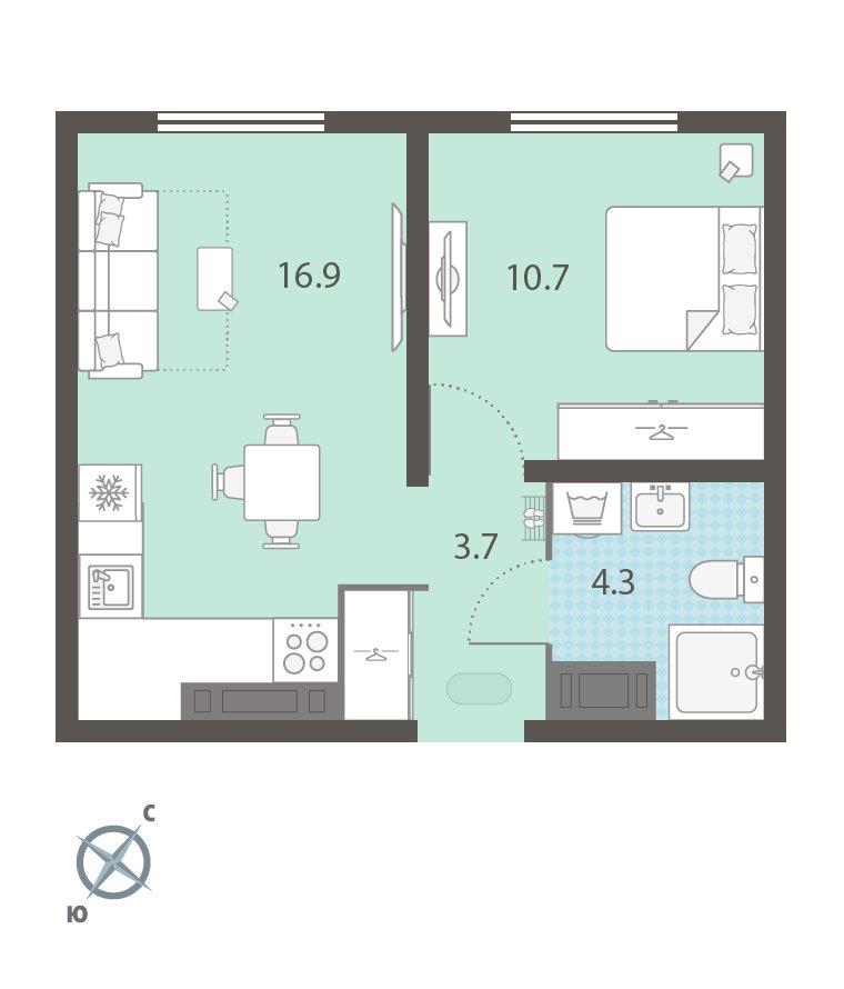 Однокомнатная квартира 35,60 м2 по ул. 40-летия Комсомола 35/5 за 6415120 руб. |