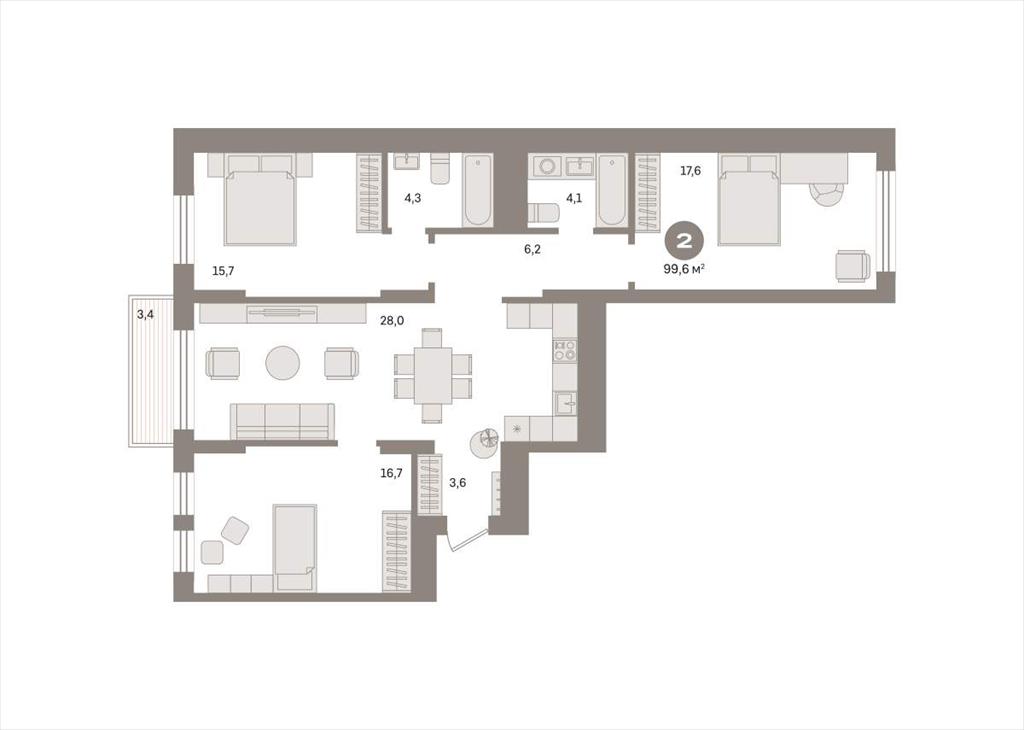 Трехкомнатная квартира в квартале «Депо» - это квартира с объединенной кухней-гостиной, тремя спальнями и ванной комнатой. Купить квартиру выгодно напрямую от застройщика Брусника.