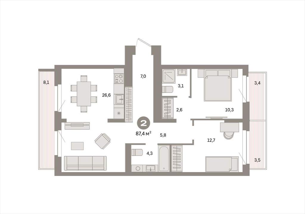 Двухкомнатная квартира 87,40 м2 по ул. Таватуйская 20 за 10520000 руб. |