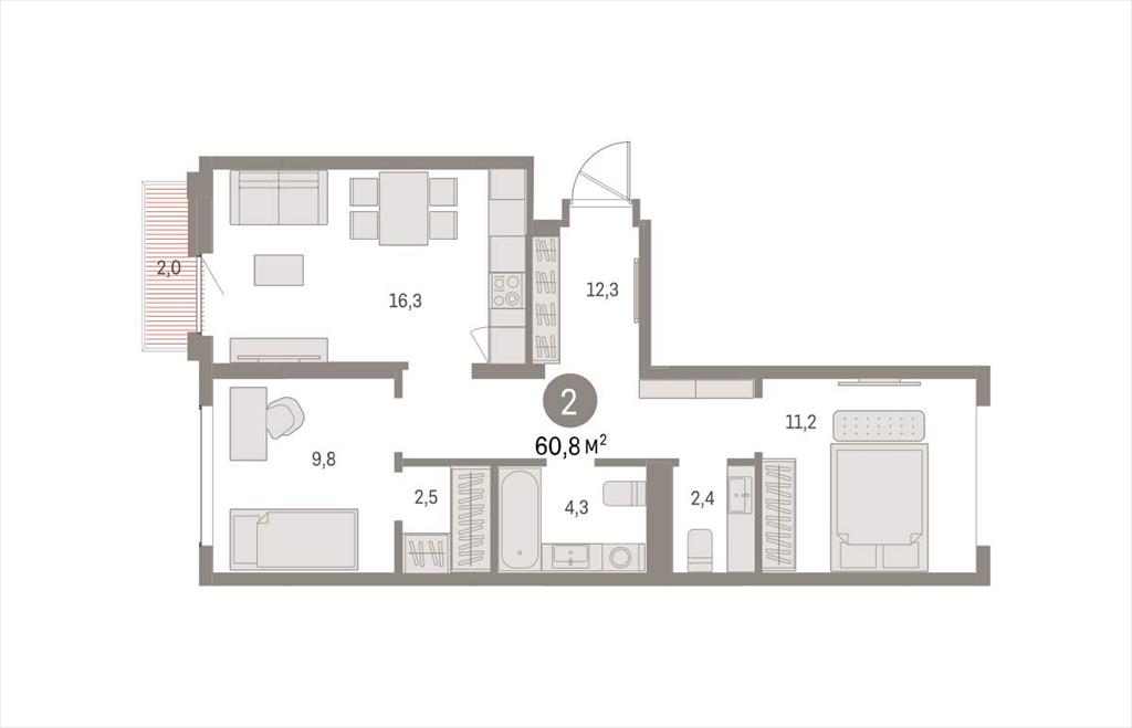 Двухкомнатная квартира 60,76 м2 по ул. Академика Ландау стр5 за 9160000 руб. |