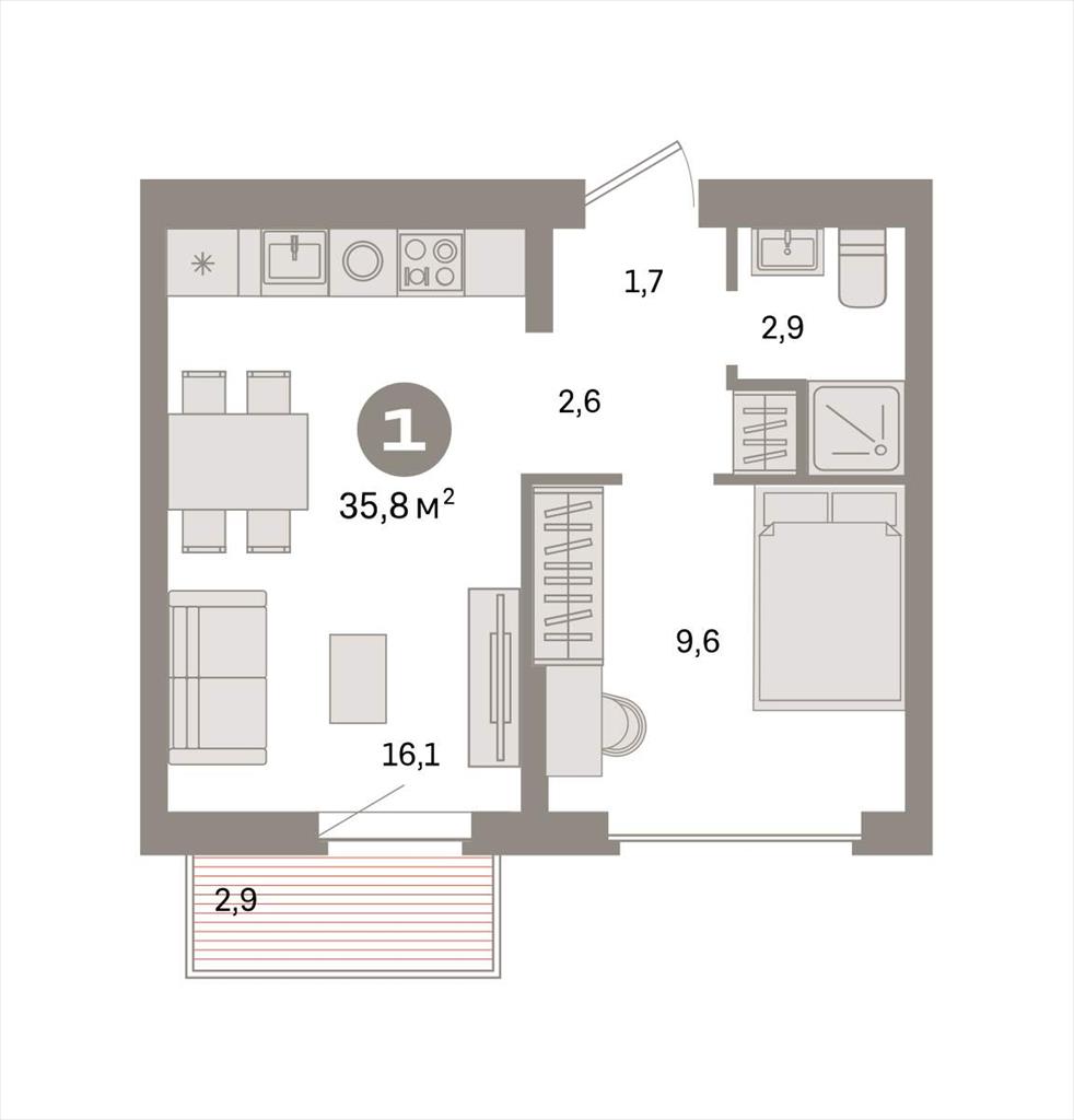 Однокомнатная квартира 35,80 м2 по ул. Таватуйская 20 за 5830000 руб. |
