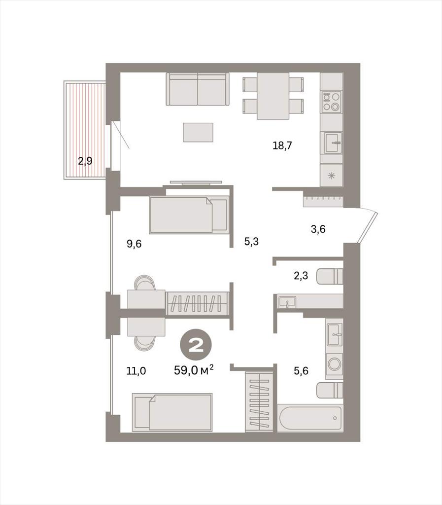 Двухкомнатная квартира 59,00 м2 по ул. Таватуйская 20 за 7910000 руб. |
