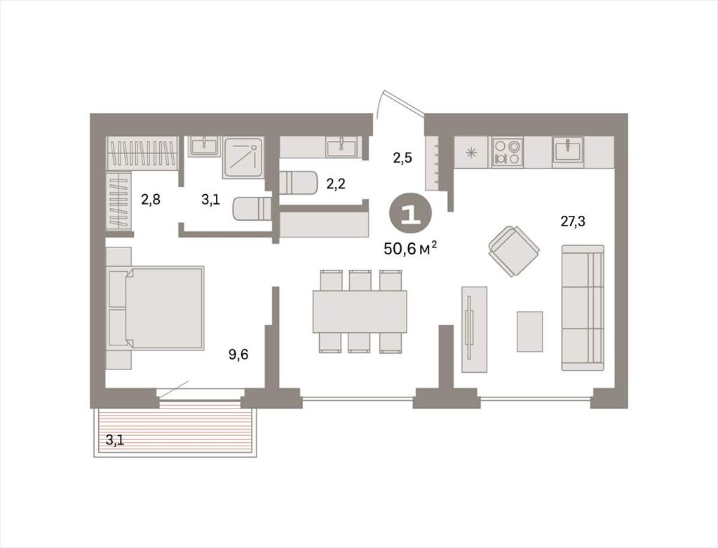 Однокомнатная квартира 50,60 м2 по ул. Таватуйская 20 за 7400000 руб. |