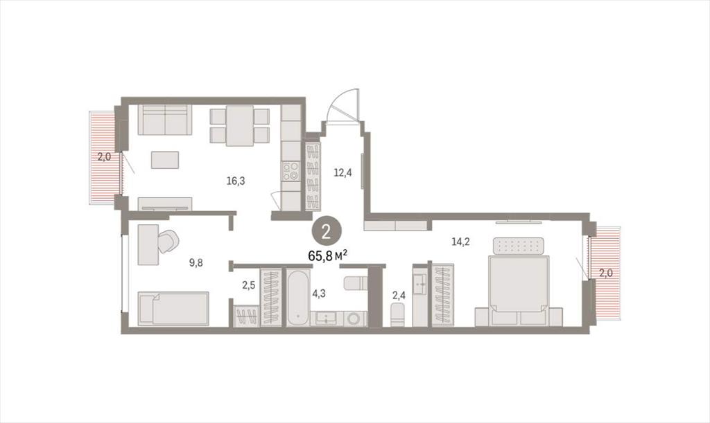 Двухкомнатная квартира 65,78 м2 по ул. Академика Ландау стр5 за 9040000 руб. |