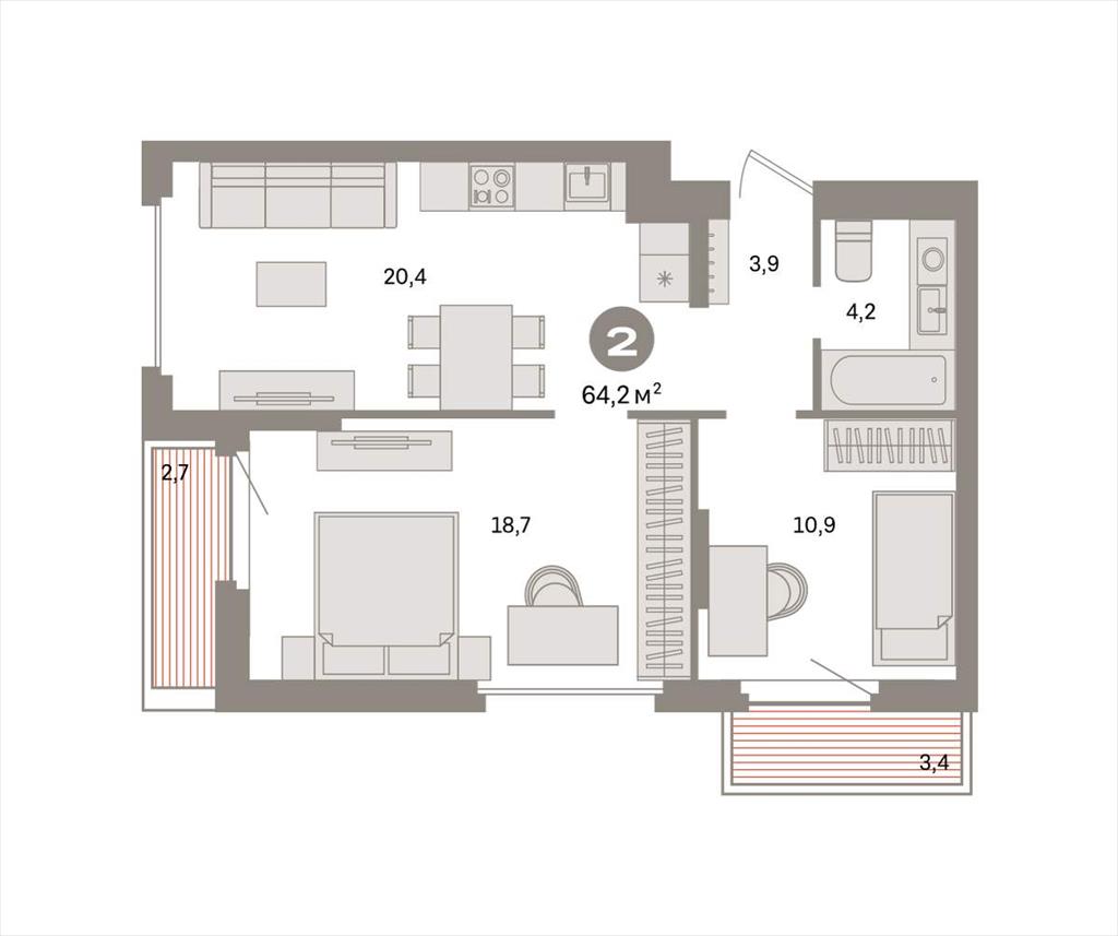 Двухкомнатная квартира 64,20 м2 по ул. Таватуйская 20 за 8630000 руб. |