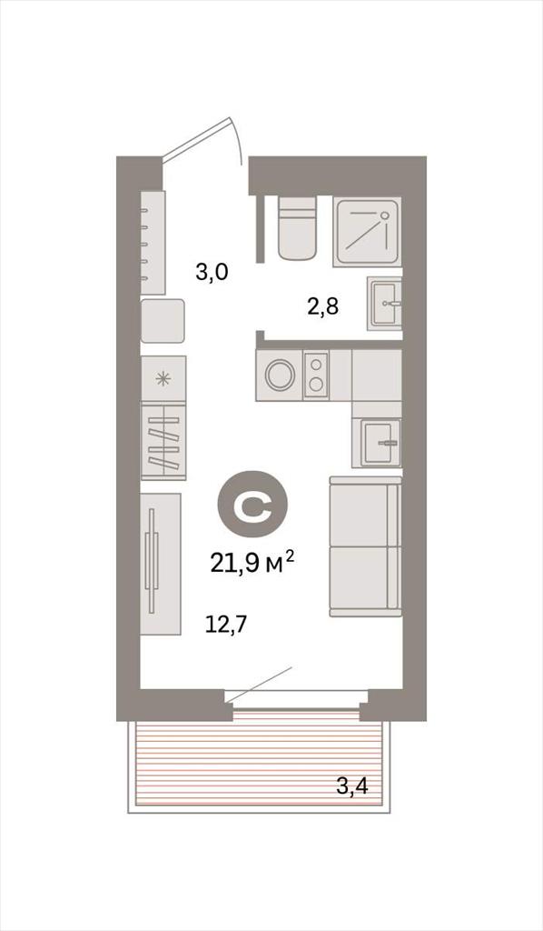 квартира 21,90 м2 по ул. Таватуйская 20 за 4430000 руб. |