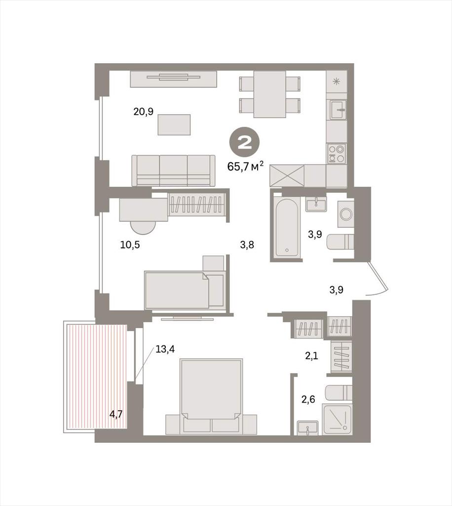 Двухкомнатная квартира 65,71 м2 по ул. Таватуйская 20 за 9010000 руб. |