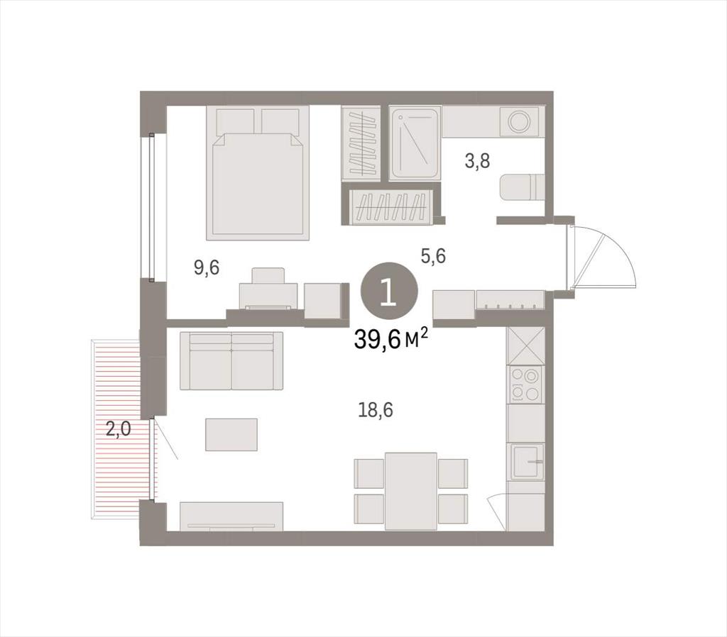 Однокомнатная квартира 39,56 м2 по ул. Академика Ландау стр5 за 6750000 руб. |