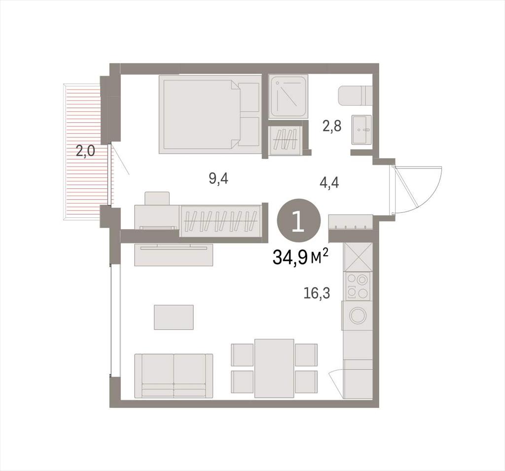Однокомнатная квартира 34,89 м2 по ул. Академика Ландау стр5 за 6260000 руб. |