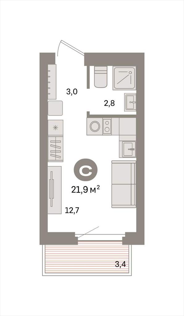 квартира 21,90 м2 по ул. Таватуйская 20 за 4390000 руб. |