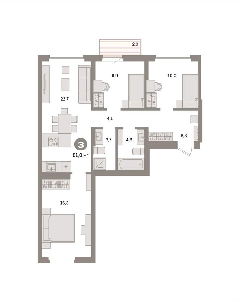 Трехкомнатная квартира 81,00 м2 по ул. Таватуйская 20 за 10650000 руб. |