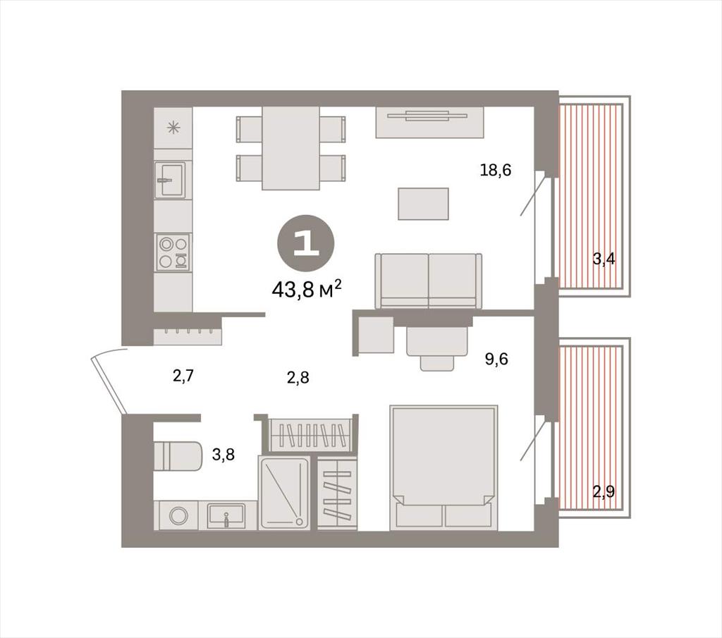 Однокомнатная квартира 43,80 м2 по ул. Таватуйская 20 за 6670000 руб. |