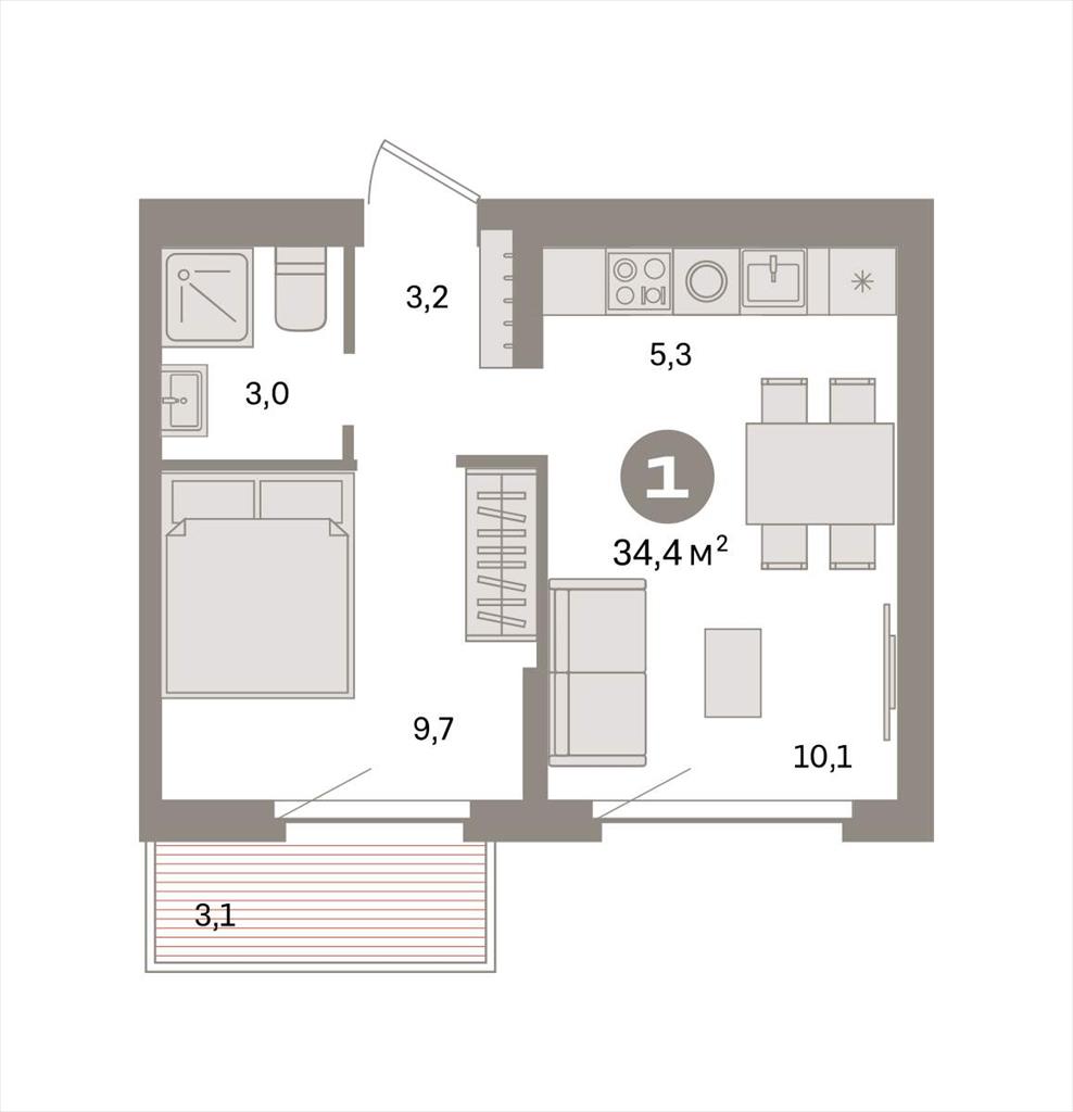 Однокомнатная квартира 34,41 м2 по ул. Таватуйская 20 за 4620000 руб. |