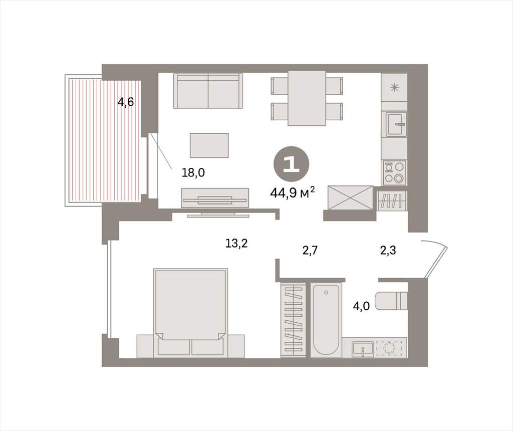 Однокомнатная квартира 44,90 м2 по ул. Таватуйская 20 за 5430000 руб. |
