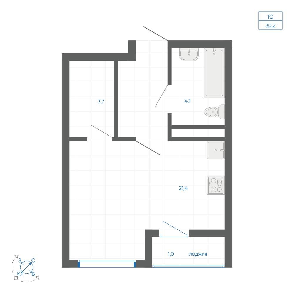общая 30,2 м2, жилая 22,5 м2, кухни 5,2 м2 |