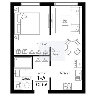 <strong>Общая площадь квартиры — 32,11 м²</strong>, из которых 15,26 м² приходится на просторную кухню, а 10,14 м² — на жилую комнату. Здесь вы сможете создать уютное пространство, отражающее ваш стиль и вкус.<br />