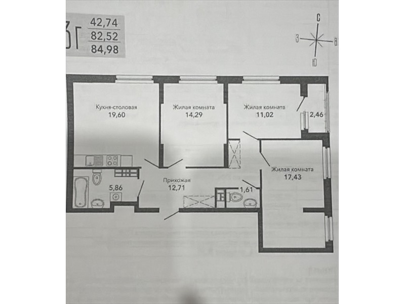 Трехкомнатная квартира 81,10 м2 по ул. ул. Сапожникова 3б за 12999000 руб. |