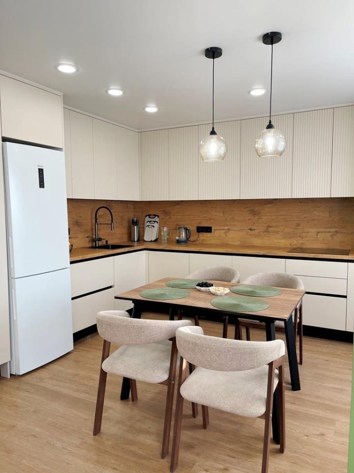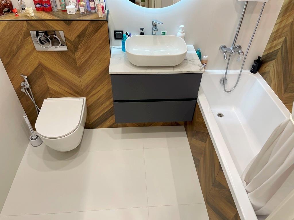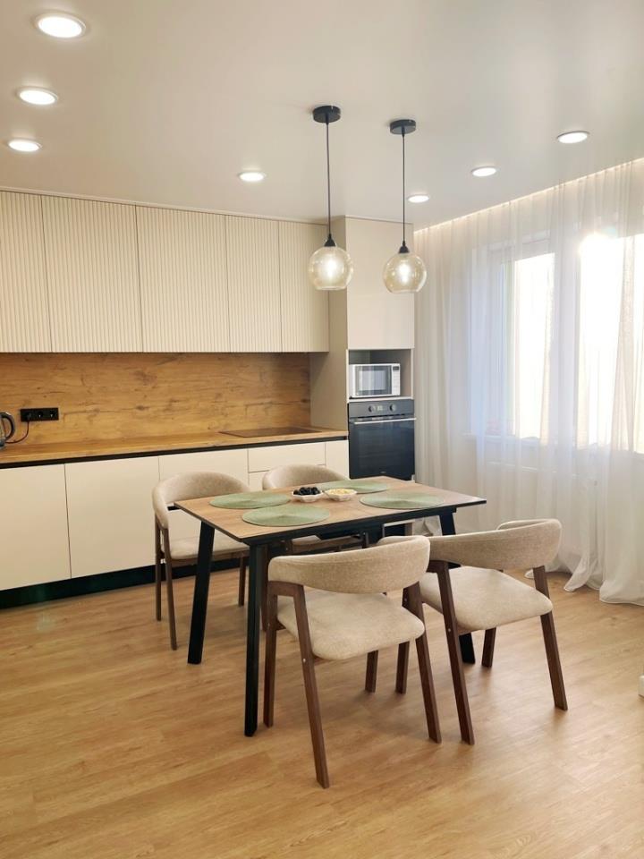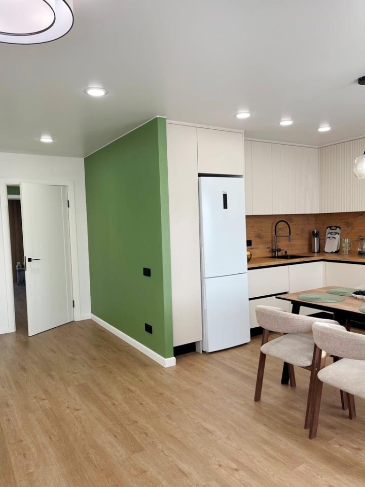 <p>В квартире сделан ремонт по дизайн проекту из качественных материалов. Все делали для себя! Полы заливали во всей квартире, выравнивали стены . На полу – кварц - винил, стены – обои под покраску, потолок – натяжной, санузлы стены и пол – плитка. Есть вся документация по электрике, по сантехнике.</p>