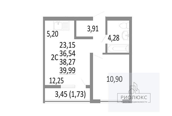 Общая площадь квартиры — 39,9 м², из которых 12,25 м² приходится на жилую площадь, а 10,9 м² — на просторную кухню, где будет приятно готовить и собираться за семейными ужинами.<br />