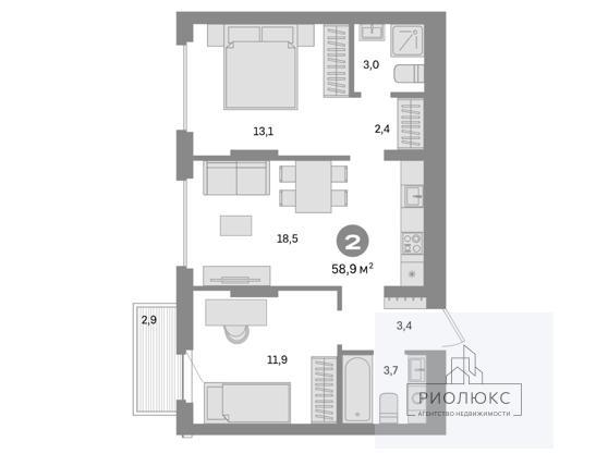 Двухкомнатная квартира 56,00 м2 по ул. за 6400000 руб. |