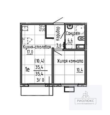 общая 35,4 м2, жилая 24,4 м2, кухни 3 м2 |