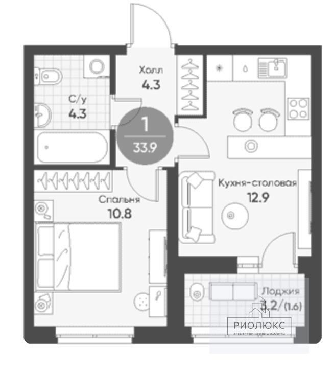 Сердцем этого жилища является просторная кухня площадью 12.9 м², которая открывает безграничные возможности для оформления: здесь можно организовать и полноценную обеденную зону, и комфортное рабочее место, превратив ее в центр притяжения для жизни и приема гостей. Уютная жилая зона площадью 10.8 м² станет идеальным местом для отдыха, позволяя легко разместить удобную кровать, мягкий уголок и создать атмосферу личного спокойствия.<br />