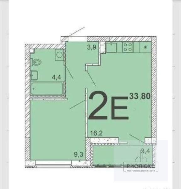общая 33,8 м2, жилая 9,3 м2, кухни 16,2 м2 |