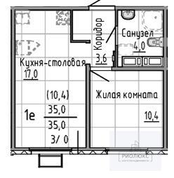 общая 35 м2, жилая 23,4 м2, кухни 4 м2 |