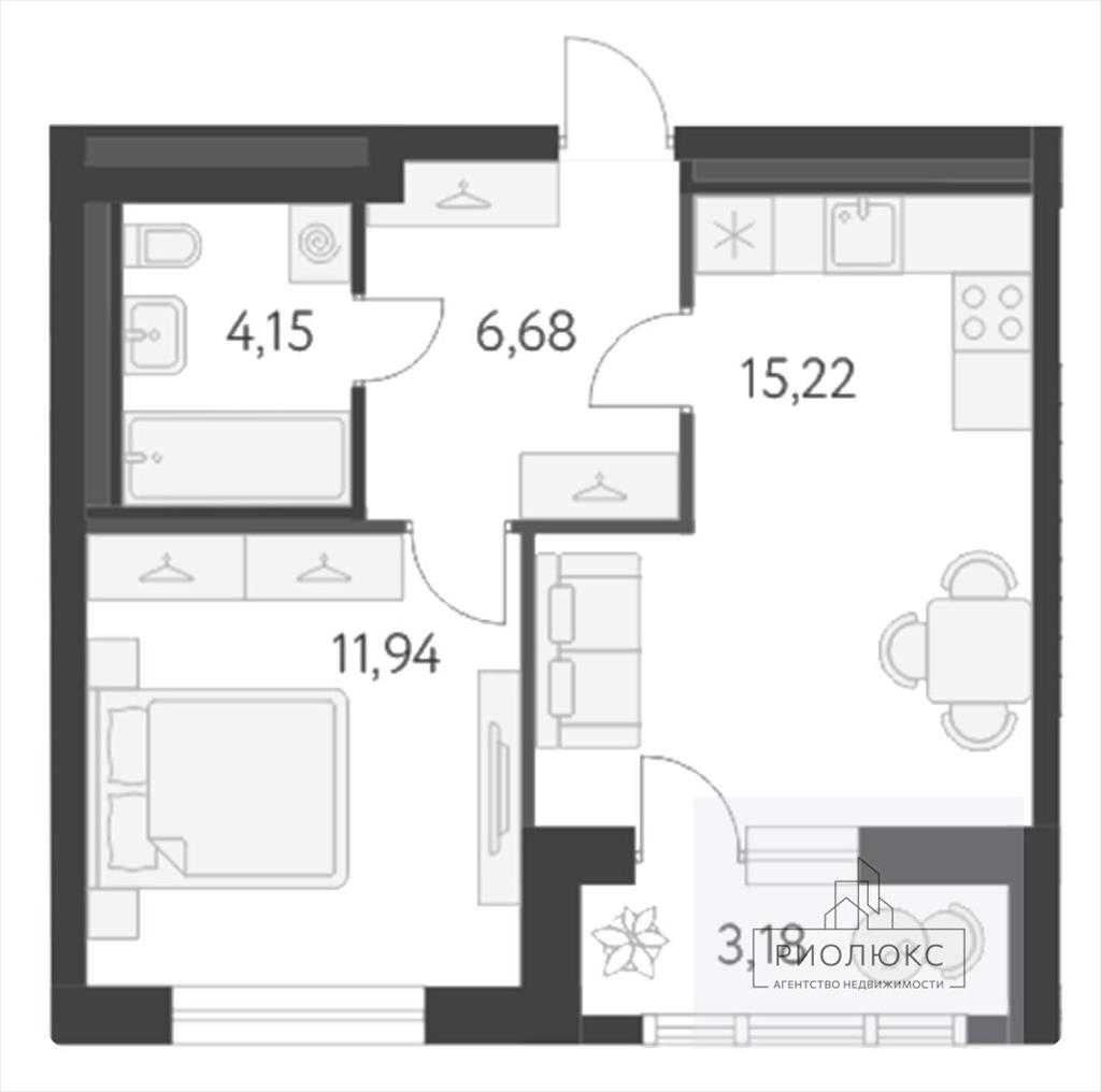 Общая площадь квартиры — 38,01 м². Вас приятно удивит просторная кухня площадью 15,22 м² — здесь хватит места для создания кулинарных шедевров и семейных ужинов. Жилая площадь составляет 11,94 м² — комната достаточно просторная, чтобы обустроить её по своему вкусу и создать атмосферу уюта и гармонии.<br />
