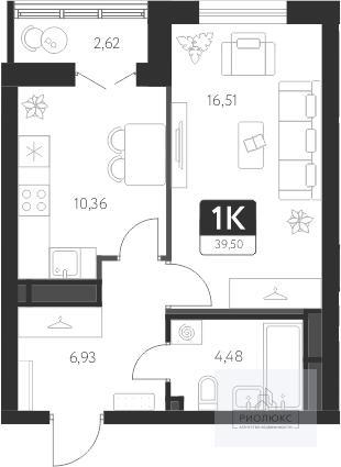 Общая площадь квартиры — 38,31 м². Здесь вас ждёт светлая и уютная комната площадью 16,51 м², которая станет вашим личным пространством для отдыха и вдохновения. Но настоящей жемчужиной этой квартиры является кухня — её площадь составляет 10,36 м². Здесь вы сможете воплотить в жизнь самые смелые кулинарные идеи и устроить уютные вечера в кругу близких.<br />