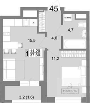 Общая площадь квартиры — <strong>36</strong> квадратных метров. Здесь гармонично сочетаются функциональность и простор: жилая площадь составляет <strong>11,2</strong> квадратных метров, а кухня — внушительные <strong>15,5 </strong>квадратных метров. Такая планировка позволит вам с лёгкостью обустроить комфортное жилое пространство и создать на кухне атмосферу для приятных семейных ужинов или встреч с друзьями.<br />