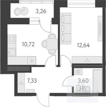 Общая площадь квартиры составляет <strong>34,72 м²,</strong> из которых <strong>10,72 м²</strong> занимает просторная и функциональная кухня — здесь хватит места для создания кулинарных шедевров и семейных ужинов. Жилая площадь — <strong>12,64 м²</strong> — позволит организовать пространство так, как вам удобно: можно обустроить уютную спальню, рабочую зону или уголок для отдыха.<br />