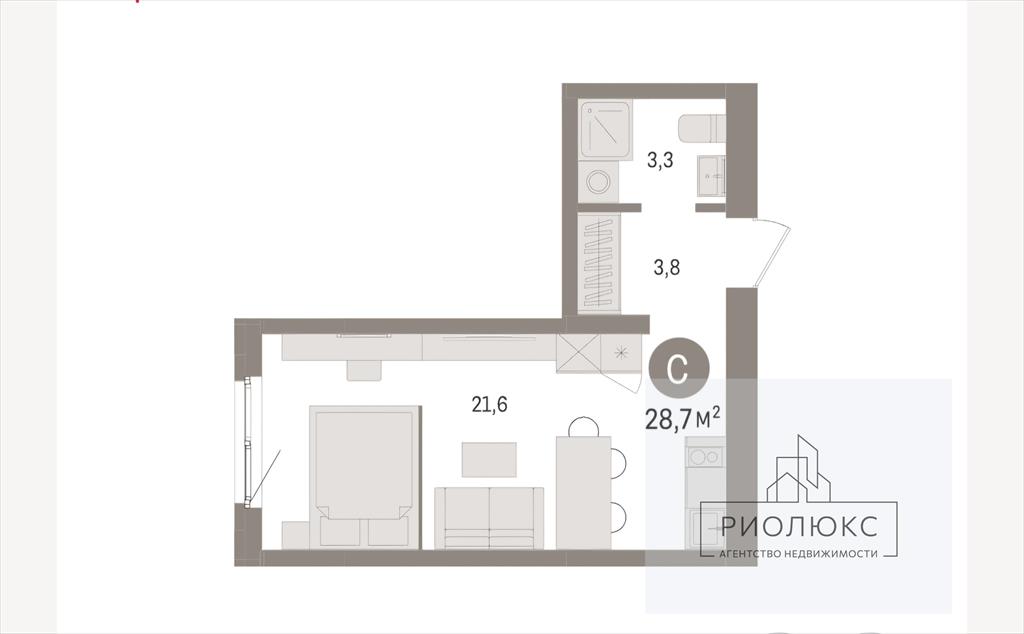 общая 28,7 м2, жилая 18 м2, кухни 5 м2 |