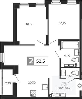 общая 52,5 м2, жилая 20 м2, кухни 20,3 м2 |