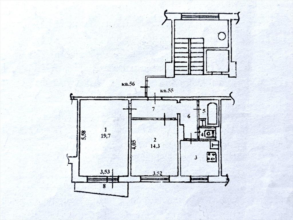 общая 54 м2, жилая 34 м2, кухни 9 м2 |