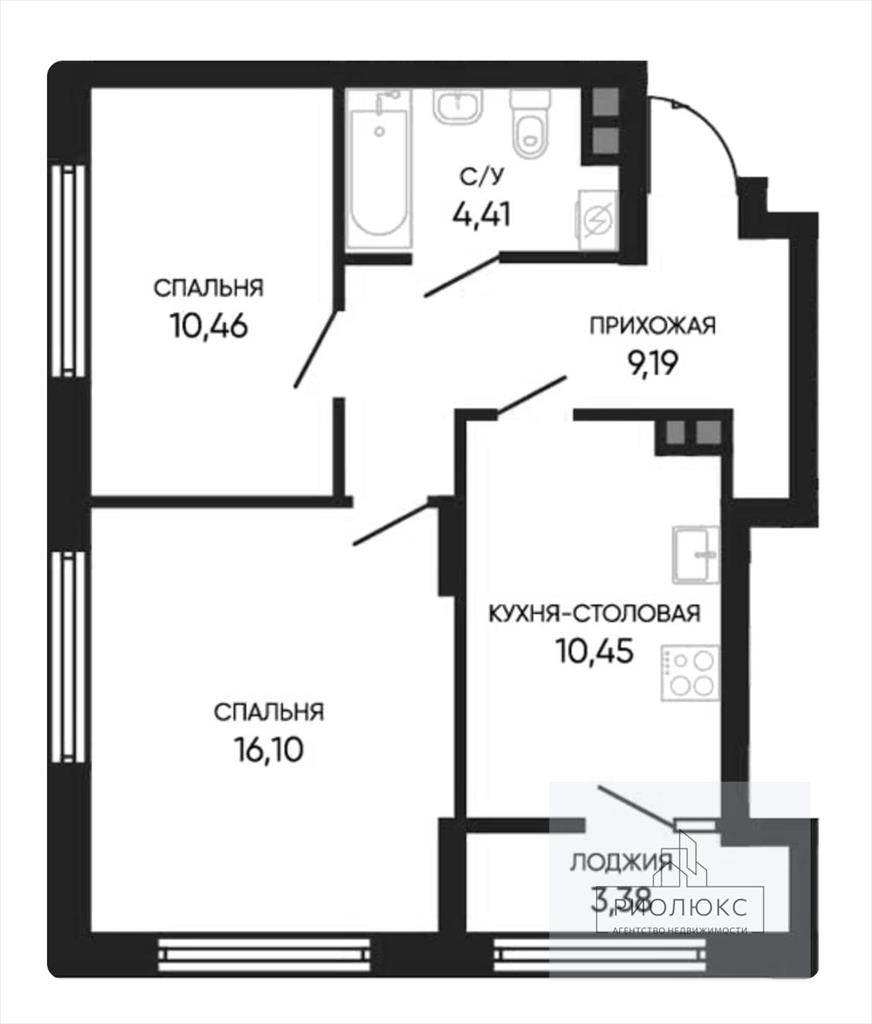 Двухкомнатная квартира 52,30 м2 по ул. Ляпустина 35 за 5800000 руб. |