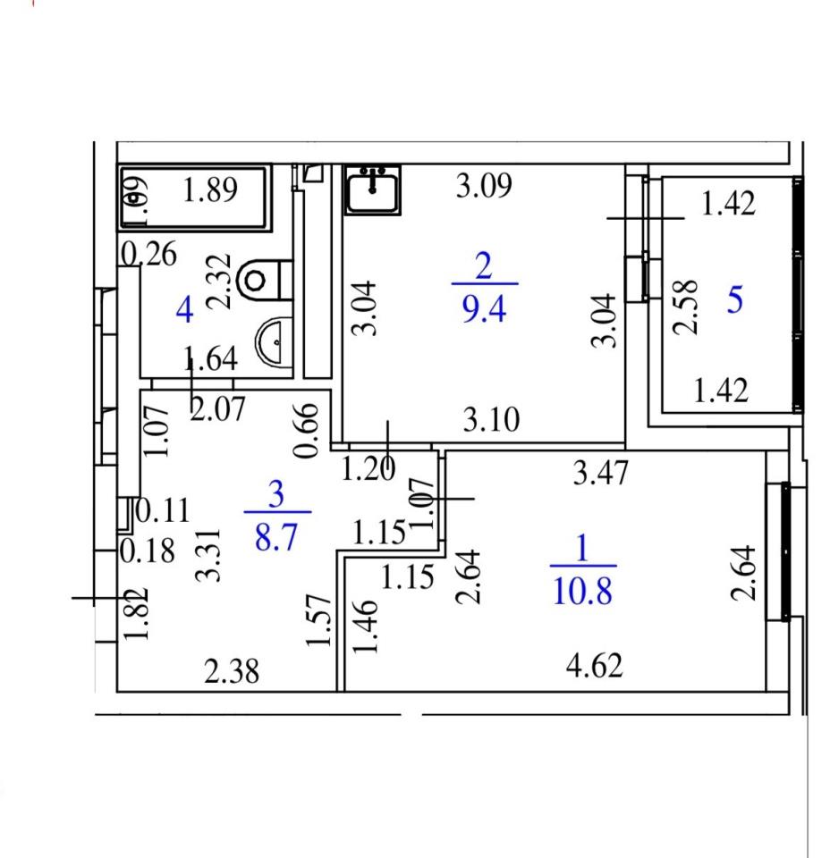 общая 33 м2, жилая 10,8 м2, кухни 9,4 м2 |