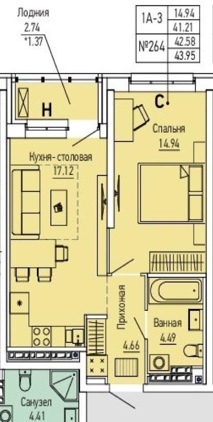 Однокомнатная квартира 44,00 м2 по ул. ул. Академика Ландау стр. 1 за 6300000 руб. |